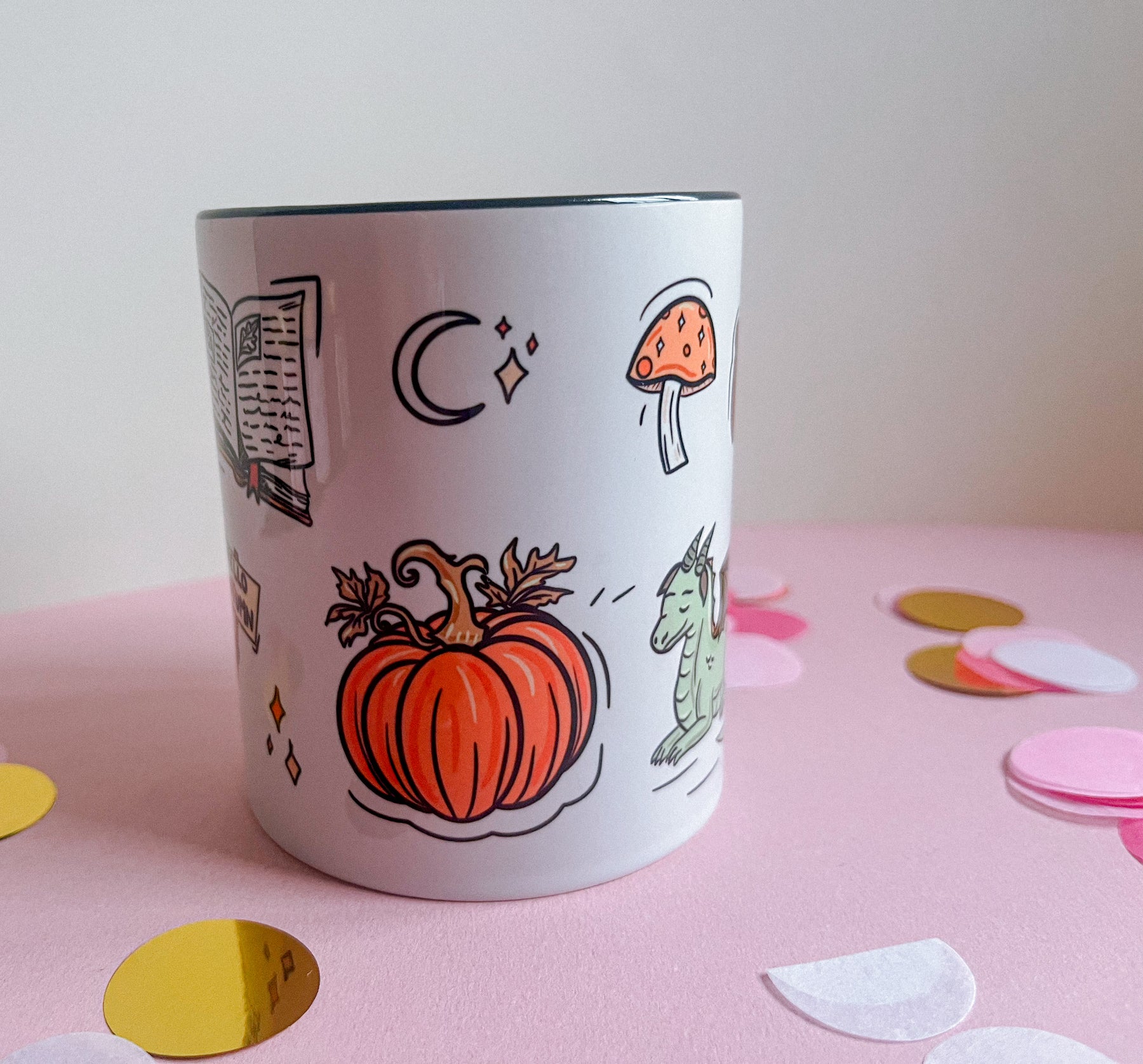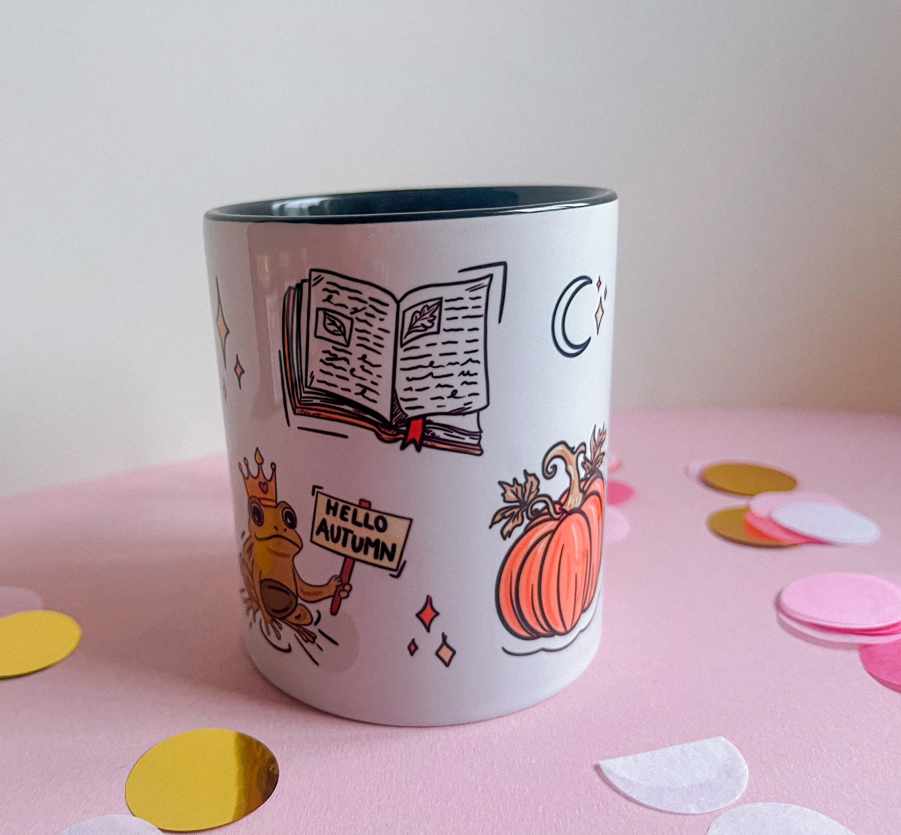 Get into the Autumnal spirit with our fairytale mug! This 11oz ceramic mug features a wraparound design adorned with festive Autumnal illustrations, making it the perfect companion for your autumn beverages.